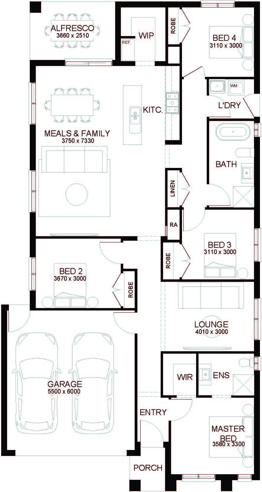 - Double-glazed awning windows and sliding doors to double-storey homes throughout